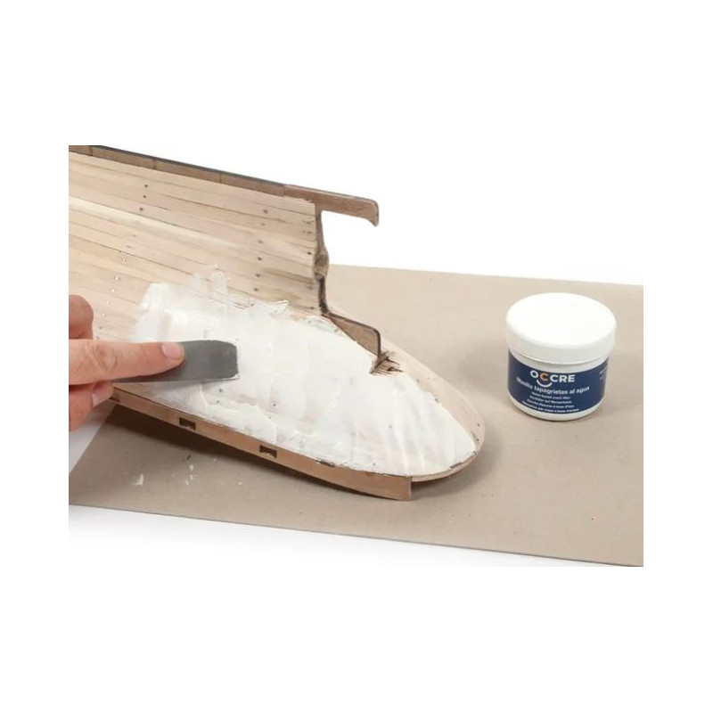 The putty is used to cover the joints or repair imperfections that may remain in the hull, such as an area that has been sunken more than required, or unwanted holes.
